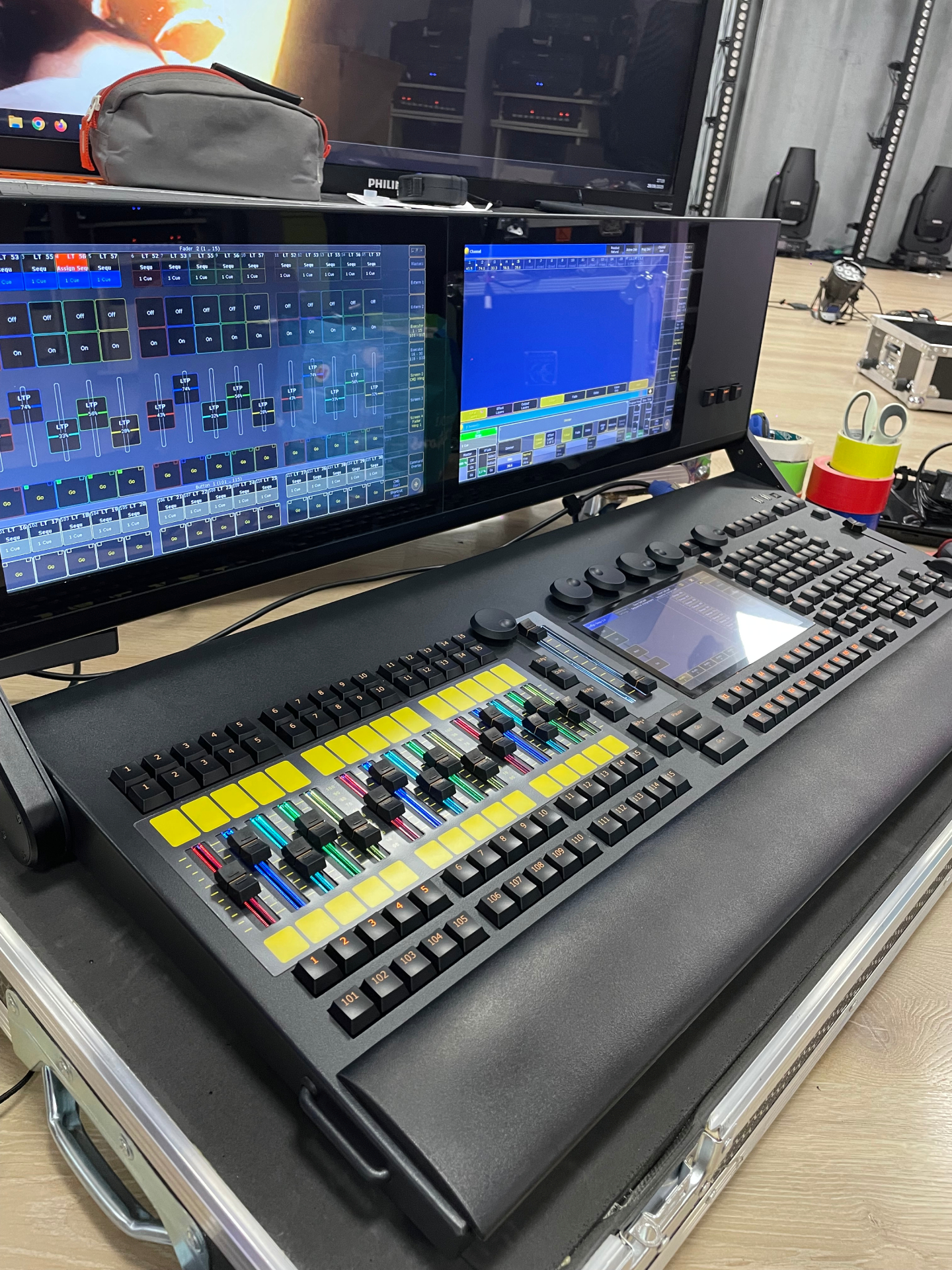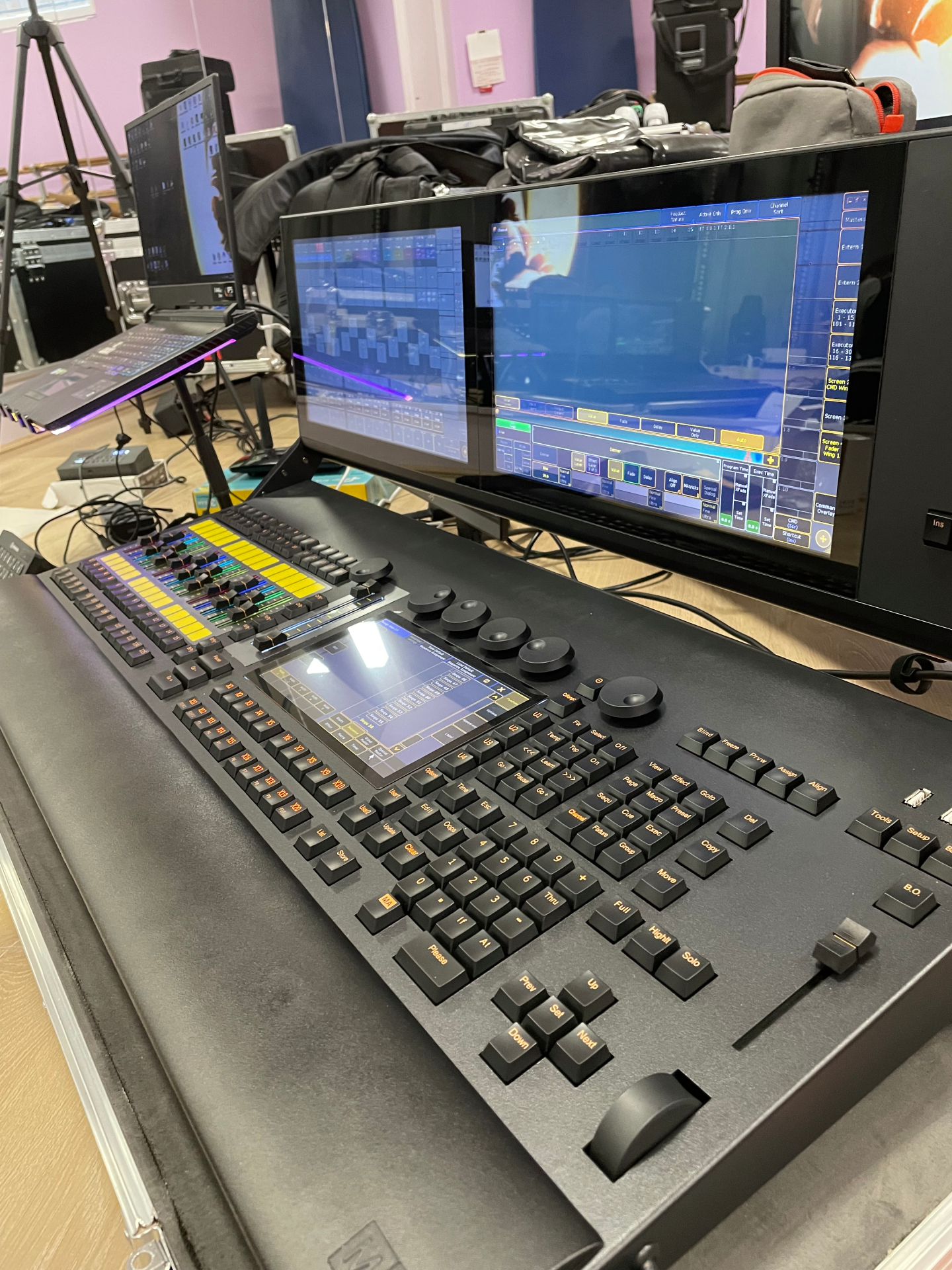 Je suis en train de me former sur les consoles lumières GrandMa et ETC EOS pour compléter mes compétences.